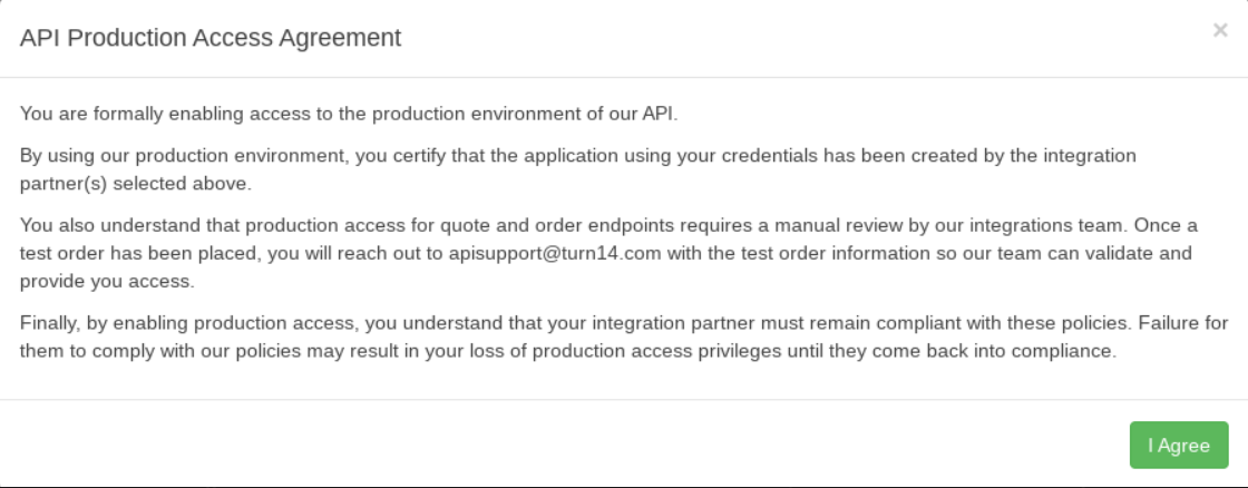 If your brands list is empty follow these steps to enable the Turn 14 brands endpoint. Please note this needs to be done by someone with admin level access on the account.