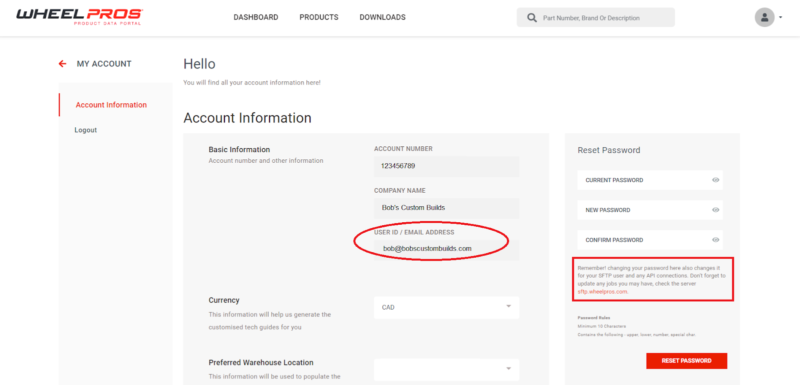 2.Go to your Account Page at https://data.wheelpros.com/users/account-information