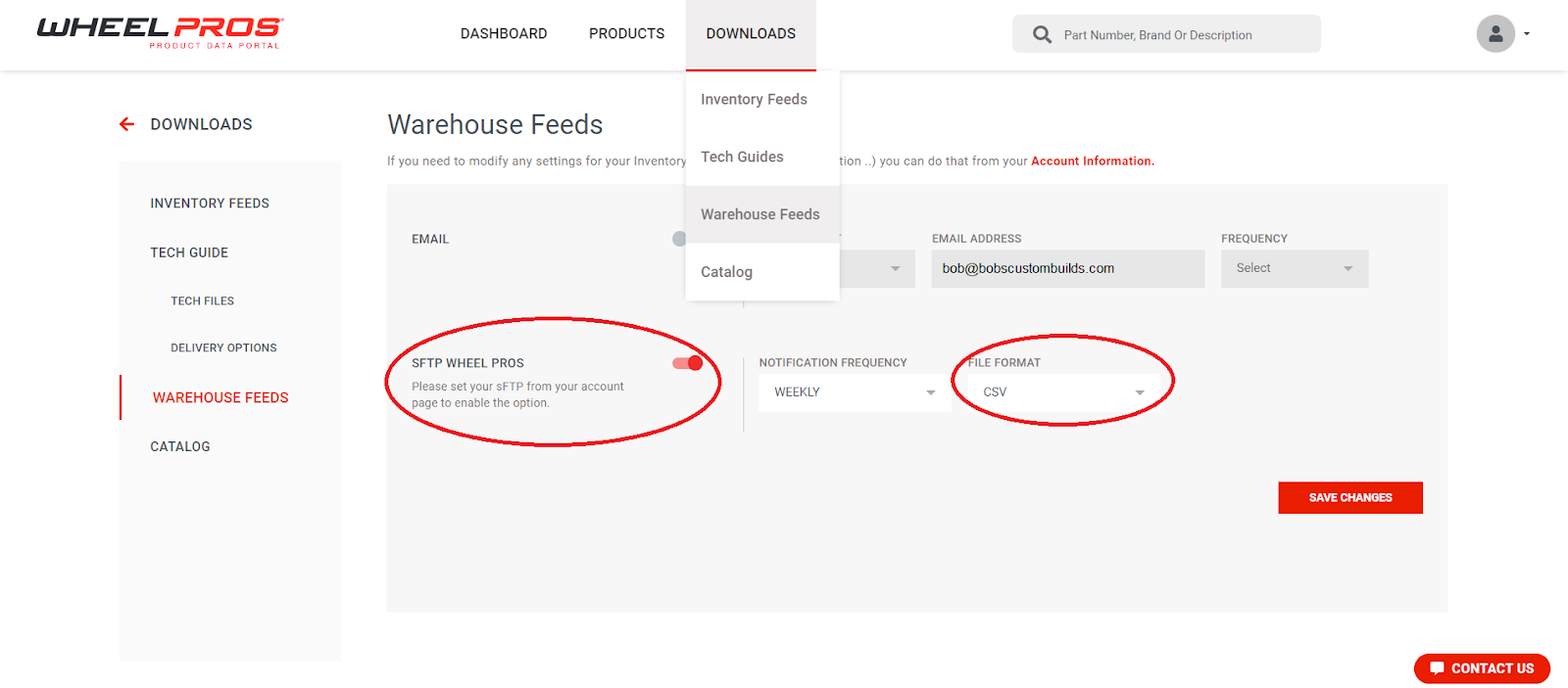 Ensure that “SFTP Wheel Pros” option is enabled and that the file format is set to CSV.
