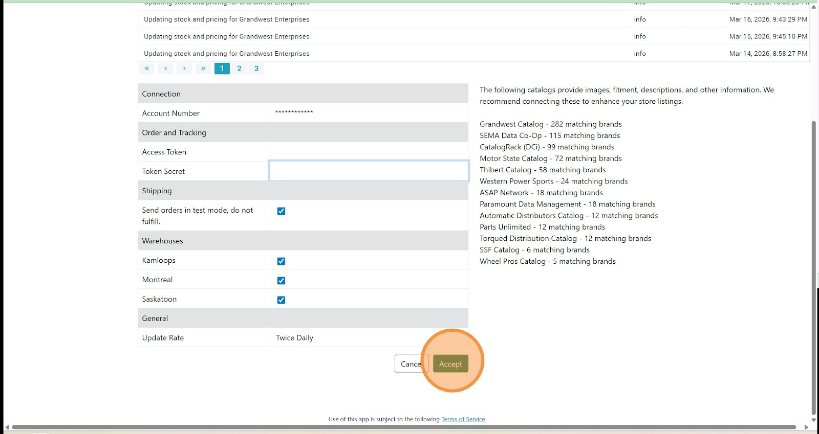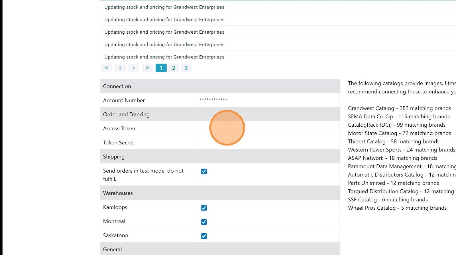 Currently Grandwest doesn't require a test order, we simply place a live order and notify Grandwest to watch to make sure it is successful. You will need to request you Grandwest order and tracking access token and secret from slingshot@grandwestauto.com. Please email support@dataheretothere.com and slingshot@grandwestauto.com when you place the first order.